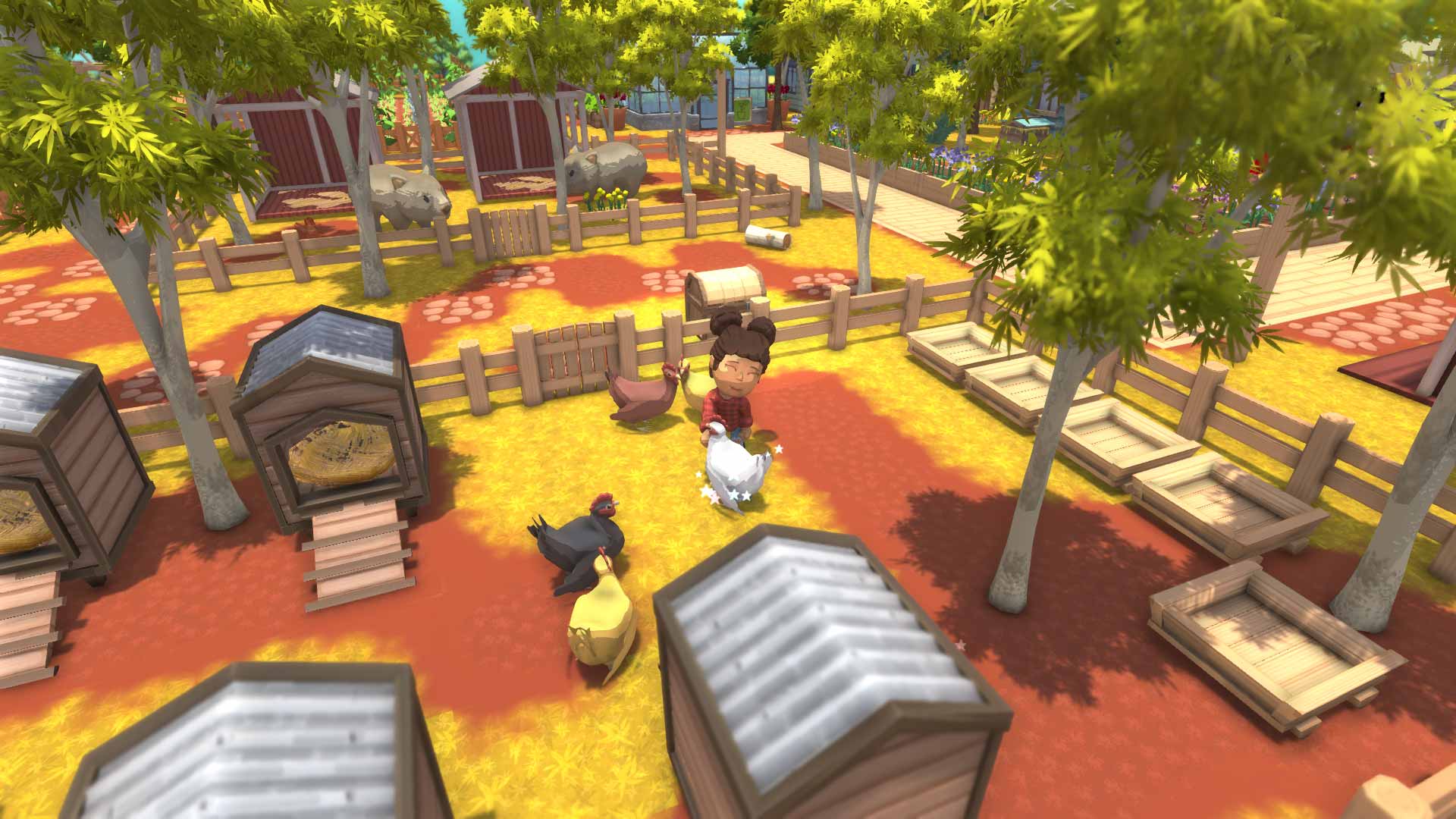 Du kan låse op for en mine med masser af malm og bytte. Du kan selvfølgelig også plante en masse forskellige afgrøder, som du kan vande og beskytte mod solen. Rovdyr har brug for at blive beskyttet. Hvis du stadig har tid tilbage, så kan du starte med mange Dekorative genstande forskønne byen, bygge stier og hegn og skabe en park med et springvand.